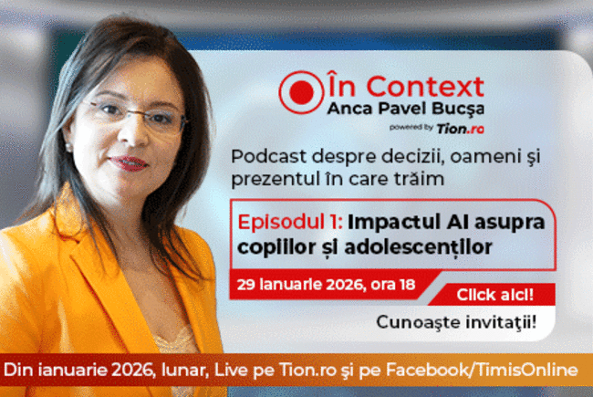 Primul episod al podcastului „În Context”, programat pentru joi, 29 ianuarie, la ora 18:00, va explora „Impactul AI asupra copiilor și adolescenților”. Autorii își propun să aducă invitați reprezentați din domenii relevante, care să discute tematici actuale ce ne influențează viața cotidiană, conform unor informații recente.